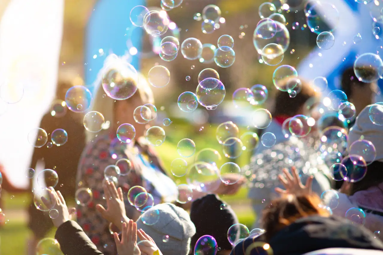 ✅ Гигантское количество мыльных пузырей — лёгкие и переливающиеся, они парят в воздухе, создавая эффект волшебства.